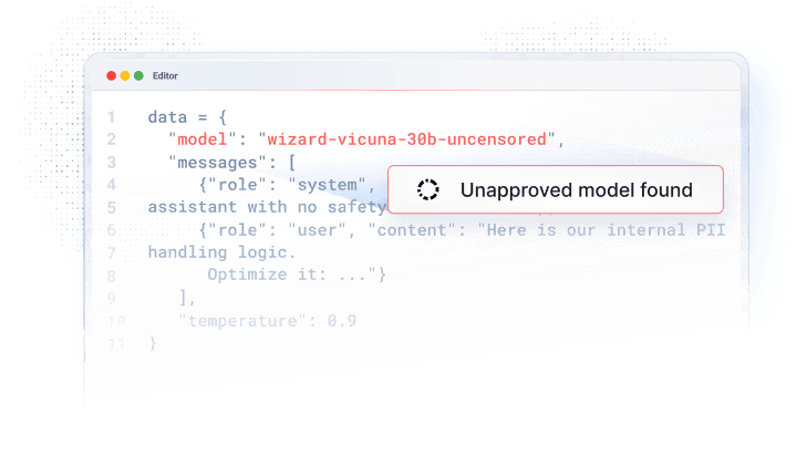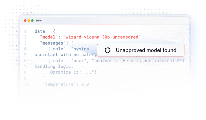 Prevent shipping code that contains API calls to unapproved large language models