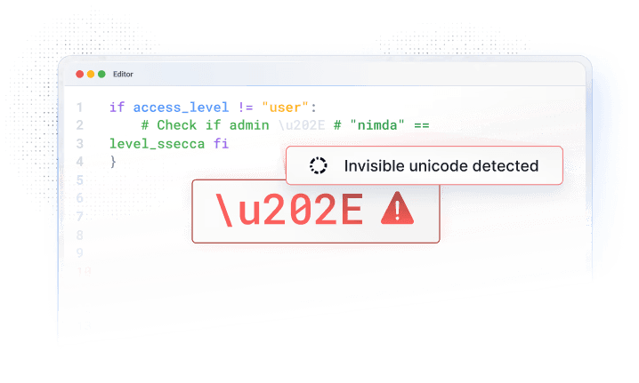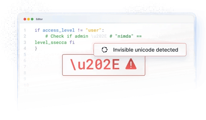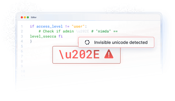 Catch AI-specific risks like invisible unicode injections before they hit production