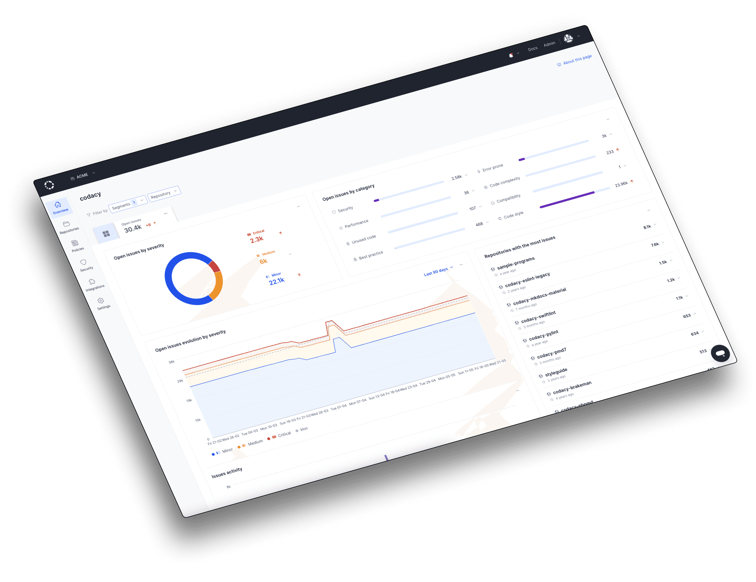 Secure code is quality code. Codacy helps engineers avoid tedious rework on insecure dependencies (SCA), hardcoded secrets, SAST and DAST vulnerabilities.