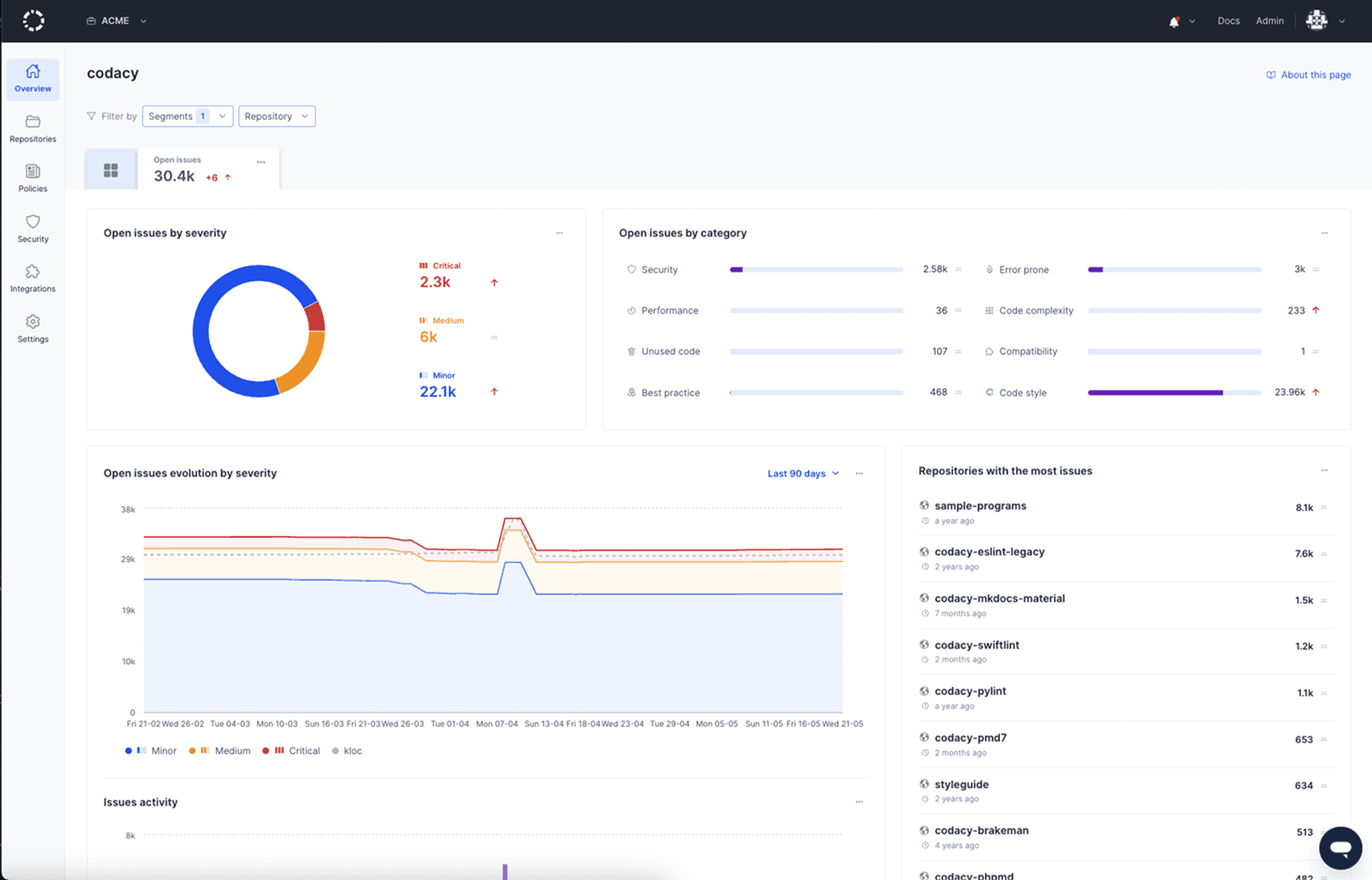 Codacy is easy to integrate and its new security dashboard provides useful insights into metrics across the company. The support team is really helpful and provides immediate assistance.
